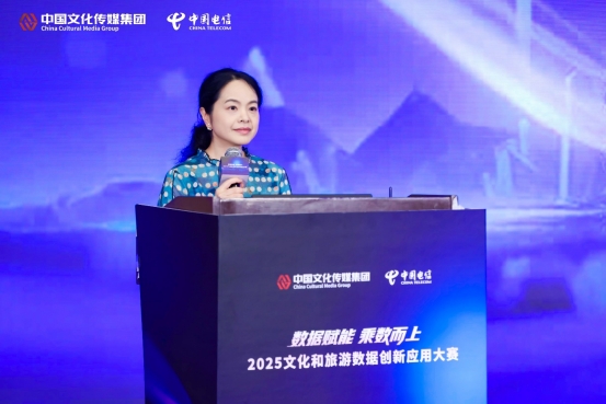 中国文化传媒集团党委委员、副总经理刘苹在致辞中表示,本次大赛是深入贯彻国家文化数字化战略、全面落实《“数据要素×”三年行动计划(2024—2026年)》的具体举措,核心聚焦文化和旅游领域数据要素的深度挖掘与场景化应用。作为主办方之一,中国文化传媒集团充分发挥在文旅资源整合、优质内容生产、宣传推广及数字化技术储备等方面的综合优势,联合中国电信集团通过“挖掘-遴选-孵化”全链条培育优质项目案例,致力于打造文旅数据要素开发利用的标杆示范,提炼可落地、可复制的产业数字化转型模式,为行业升级提供系统性解决方案。未来,传媒集团将持续深化与中国电信等战略伙伴的合作,推动资源共享、技术协同,进一步探索文旅数据在智慧景区、文化传承、消费升级等多场景的深度应用,助力数字文旅生态体系构建。