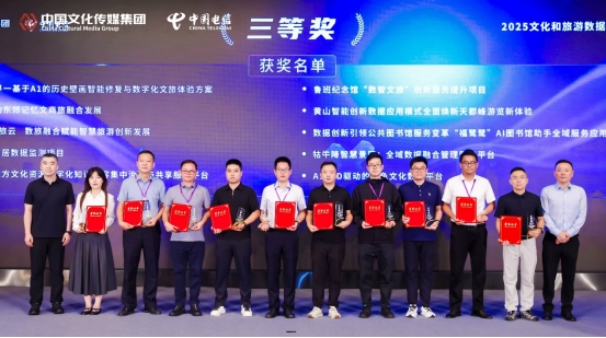 9月9日,由文化和旅游部科技教育司指导,中国文化传媒集团、中电信文宣科技有限公司联合主办,中传文旅(北京)文化发展有限公司与中国电信文宣产业研究院共同承办的“数据赋能 乘数而上”2025文化和旅游数据创新应用大赛颁奖在北京举行。相关文旅企事业单位负责人、重点科研院所学者及高校核心团队代表等100余人齐聚现场,共同见证文旅数据要素价值释放新路径,为文旅产业数字化转型与高质量发展注入创新动能